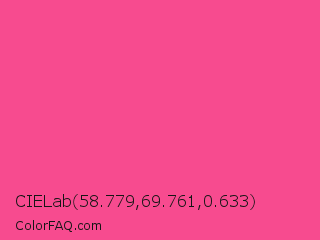 CIELab 58.779,69.761,0.633 Color is a light rose color and the nearest color is French Rose #f64a8a. Hex code #f74b8f and RGB value is rgb(247,75,143). In RGB color space, this color is composed of 97% red, 29% green, 56% blue, In CMYK color space, this color is composed of 0% cyan, 70% magenta, 42% yellow , 3% black , In HSL color space, this color has a hue angle of 336° , 91% saturation and 63% lightness.