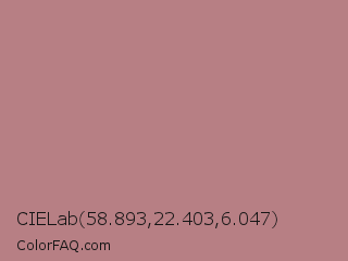 CIELab 58.893,22.403,6.047 Color is a light red color and the nearest color is Old Rose #c08081. Hex code #b77f84 and RGB value is rgb(183,127,132). In RGB color space, this color is composed of 72% red, 50% green, 52% blue, In CMYK color space, this color is composed of 0% cyan, 31% magenta, 28% yellow , 28% black , In HSL color space, this color has a hue angle of 355° , 28% saturation and 61% lightness.