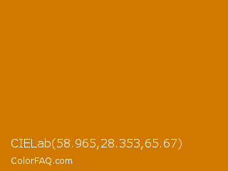 CIELab 58.965,28.353,65.67 Color is a normal orange color and the nearest color is Meteor #d07d12. Hex code #d17801 and RGB value is rgb(209,120,1). In RGB color space, this color is composed of 82% red, 47% green, 0% blue, In CMYK color space, this color is composed of 0% cyan, 43% magenta, 100% yellow , 18% black , In HSL color space, this color has a hue angle of 34° , 99% saturation and 41% lightness.