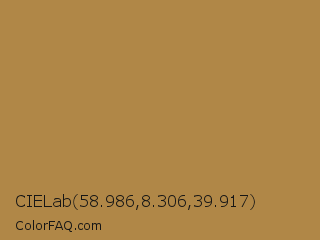 CIELab 58.986,8.306,39.917 Color is a normal orange color and the nearest color is Driftwood #af8751. Hex code #b08747 and RGB value is rgb(176,135,71). In RGB color space, this color is composed of 69% red, 53% green, 28% blue, In CMYK color space, this color is composed of 0% cyan, 23% magenta, 60% yellow , 31% black , In HSL color space, this color has a hue angle of 37° , 43% saturation and 48% lightness.