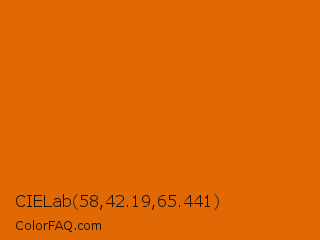 CIELab 58,42.19,65.441 Color is a normal orange color and the nearest color is Bamboo #da6304. Hex code #e06905 and RGB value is rgb(224,105,5). In RGB color space, this color is composed of 88% red, 41% green, 2% blue, In CMYK color space, this color is composed of 0% cyan, 53% magenta, 98% yellow , 12% black , In HSL color space, this color has a hue angle of 27° , 96% saturation and 45% lightness.