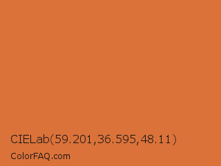 CIELab 59.201,36.595,48.11 Color is a normal orange color and the nearest color is Red Damask #da6a41. Hex code #da723a and RGB value is rgb(218,114,58). In RGB color space, this color is composed of 85% red, 45% green, 23% blue, In CMYK color space, this color is composed of 0% cyan, 48% magenta, 73% yellow , 15% black , In HSL color space, this color has a hue angle of 21° , 68% saturation and 54% lightness.