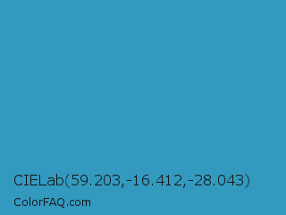 CIELab 59.203,-16.412,-28.043 Color is a normal blue color and the nearest color is Boston Blue #3b91b4. Hex code #3399bf and RGB value is rgb(51,153,191). In RGB color space, this color is composed of 20% red, 60% green, 75% blue, In CMYK color space, this color is composed of 73% cyan, 20% magenta, 0% yellow , 25% black , In HSL color space, this color has a hue angle of 196° , 58% saturation and 47% lightness.