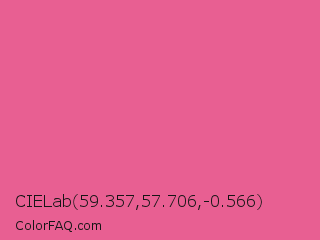 CIELab 59.357,57.706,-0.566 Color is a light rose color and the nearest color is Light Crimson #f56991. Hex code #e85f92 and RGB value is rgb(232,95,146). In RGB color space, this color is composed of 91% red, 37% green, 57% blue, In CMYK color space, this color is composed of 0% cyan, 59% magenta, 37% yellow , 9% black , In HSL color space, this color has a hue angle of 338° , 75% saturation and 64% lightness.