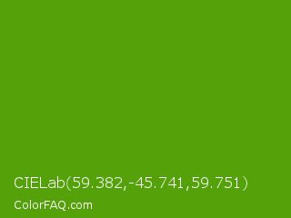 CIELab 59.382,-45.741,59.751 Color is a normal green color and the nearest color is Christi #67a712. Hex code #55a10a and RGB value is rgb(85,161,10). In RGB color space, this color is composed of 33% red, 63% green, 4% blue, In CMYK color space, this color is composed of 47% cyan, 0% magenta, 94% yellow , 37% black , In HSL color space, this color has a hue angle of 90° , 88% saturation and 34% lightness.