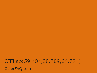 CIELab 59.404,38.789,64.721 Color is a normal orange color and the nearest color is Christine #e7730a. Hex code #e0700e and RGB value is rgb(224,112,14). In RGB color space, this color is composed of 88% red, 44% green, 5% blue, In CMYK color space, this color is composed of 0% cyan, 50% magenta, 94% yellow , 12% black , In HSL color space, this color has a hue angle of 28° , 88% saturation and 47% lightness.