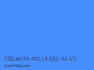 CIELab 59.452,14.932,-62.13 Color is a light blue color and the nearest color is Blueberry #4f86f7. Hex code #488dfd and RGB value is rgb(72,141,253). In RGB color space, this color is composed of 28% red, 55% green, 99% blue, In CMYK color space, this color is composed of 72% cyan, 44% magenta, 0% yellow , 1% black , In HSL color space, this color has a hue angle of 217° , 98% saturation and 64% lightness.