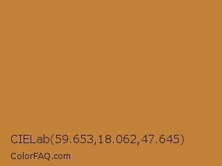 CIELab 59.653,18.062,47.645 Color is a normal orange color and the nearest color is Peru #cd853f. Hex code #c2823a and RGB value is rgb(194,130,58). In RGB color space, this color is composed of 76% red, 51% green, 23% blue, In CMYK color space, this color is composed of 0% cyan, 33% magenta, 70% yellow , 24% black , In HSL color space, this color has a hue angle of 32° , 54% saturation and 49% lightness.