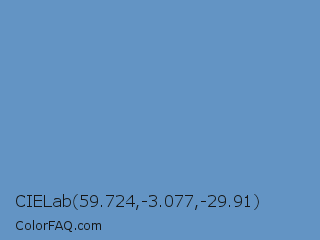 CIELab 59.724,-3.077,-29.91 Color is a normal blue color and the nearest color is Blue Gray #6699cc. Hex code #6394c4 and RGB value is rgb(99,148,196). In RGB color space, this color is composed of 39% red, 58% green, 77% blue, In CMYK color space, this color is composed of 49% cyan, 24% magenta, 0% yellow , 23% black , In HSL color space, this color has a hue angle of 210° , 45% saturation and 58% lightness.