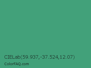 CIELab 59.937,-37.524,12.07 Color is a normal green color and the nearest color is Ocean Green #41aa78. Hex code #42a17a and RGB value is rgb(66,161,122). In RGB color space, this color is composed of 26% red, 63% green, 48% blue, In CMYK color space, this color is composed of 59% cyan, 0% magenta, 24% yellow , 37% black , In HSL color space, this color has a hue angle of 155° , 42% saturation and 45% lightness.
