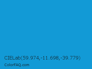 CIELab 59.974,-11.698,-39.779 Color is a normal blue color and the nearest color is Rich Electric Blue #0892d0. Hex code #129ad6 and RGB value is rgb(18,154,214). In RGB color space, this color is composed of 7% red, 60% green, 84% blue, In CMYK color space, this color is composed of 92% cyan, 28% magenta, 0% yellow , 16% black , In HSL color space, this color has a hue angle of 198° , 84% saturation and 45% lightness.