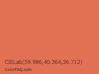 CIELab 59.986,40.364,36.712 Color is a normal red color and the nearest color is Terracotta #e2725b. Hex code #df7152 and RGB value is rgb(223,113,82). In RGB color space, this color is composed of 87% red, 44% green, 32% blue, In CMYK color space, this color is composed of 0% cyan, 49% magenta, 63% yellow , 13% black , In HSL color space, this color has a hue angle of 13° , 69% saturation and 60% lightness.