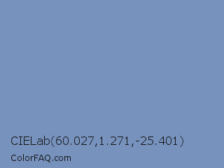 CIELab 60.027,1.271,-25.401 Color is a normal blue color and the nearest color is Ship Cove #788bba. Hex code #7792bd and RGB value is rgb(119,146,189). In RGB color space, this color is composed of 47% red, 57% green, 74% blue, In CMYK color space, this color is composed of 37% cyan, 23% magenta, 0% yellow , 26% black , In HSL color space, this color has a hue angle of 217° , 35% saturation and 60% lightness.