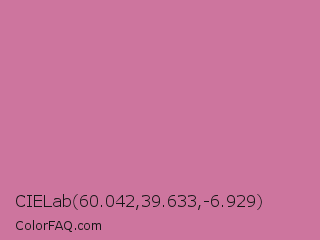 CIELab 60.042,39.633,-6.929 Color is a light rose color and the nearest color is Hopbush #d06da1. Hex code #cd759e and RGB value is rgb(205,117,158). In RGB color space, this color is composed of 80% red, 46% green, 62% blue, In CMYK color space, this color is composed of 0% cyan, 43% magenta, 23% yellow , 20% black , In HSL color space, this color has a hue angle of 332° , 47% saturation and 63% lightness.