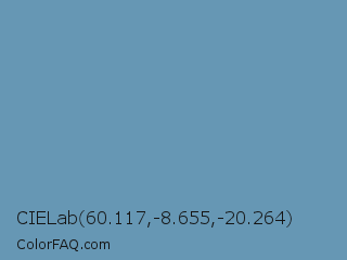 CIELab 60.117,-8.655,-20.264 Color is a normal blue color and the nearest color is Hippie Blue #589aaf. Hex code #6697b4 and RGB value is rgb(102,151,180). In RGB color space, this color is composed of 40% red, 59% green, 71% blue, In CMYK color space, this color is composed of 43% cyan, 16% magenta, 0% yellow , 29% black , In HSL color space, this color has a hue angle of 202° , 34% saturation and 55% lightness.