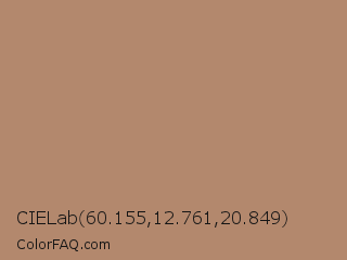 CIELab 60.155,12.761,20.849 Color is a normal orange color and the nearest color is Light Taupe #b38b6d. Hex code #b3886d and RGB value is rgb(179,136,109). In RGB color space, this color is composed of 70% red, 53% green, 43% blue, In CMYK color space, this color is composed of 0% cyan, 24% magenta, 39% yellow , 30% black , In HSL color space, this color has a hue angle of 23° , 32% saturation and 56% lightness.