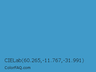 CIELab 60.265,-11.767,-31.991 Color is a normal blue color and the nearest color is Celestial Blue #4997d0. Hex code #409ac9 and RGB value is rgb(64,154,201). In RGB color space, this color is composed of 25% red, 60% green, 79% blue, In CMYK color space, this color is composed of 68% cyan, 23% magenta, 0% yellow , 21% black , In HSL color space, this color has a hue angle of 201° , 56% saturation and 52% lightness.