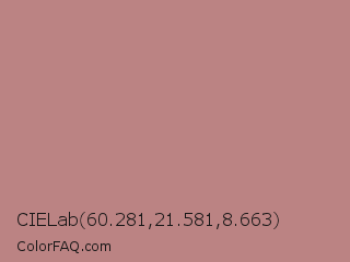 CIELab 60.281,21.581,8.663 Color is a light red color and the nearest color is Brandy Rose #bb8983. Hex code #bb8383 and RGB value is rgb(187,131,131). In RGB color space, this color is composed of 73% red, 51% green, 51% blue, In CMYK color space, this color is composed of 0% cyan, 30% magenta, 30% yellow , 27% black , In HSL color space, this color has a hue angle of 0° , 29% saturation and 62% lightness.