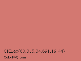 CIELab 60.315,34.691,19.44 Color is a light red color and the nearest color is Japonica #d87c63. Hex code #d37871 and RGB value is rgb(211,120,113). In RGB color space, this color is composed of 83% red, 47% green, 44% blue, In CMYK color space, this color is composed of 0% cyan, 43% magenta, 46% yellow , 17% black , In HSL color space, this color has a hue angle of 4° , 53% saturation and 64% lightness.