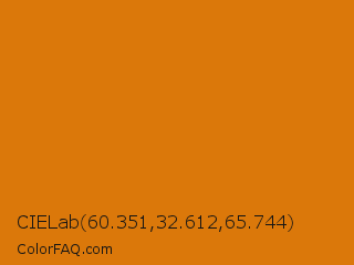 CIELab 60.351,32.612,65.744 Color is a normal orange color and the nearest color is Christine #e7730a. Hex code #db780a and RGB value is rgb(219,120,10). In RGB color space, this color is composed of 86% red, 47% green, 4% blue, In CMYK color space, this color is composed of 0% cyan, 45% magenta, 95% yellow , 14% black , In HSL color space, this color has a hue angle of 32° , 91% saturation and 45% lightness.