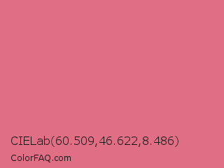 CIELab 60.509,46.622,8.486 Color is a light red color and the nearest color is Candy Pink #e4717a. Hex code #e06e85 and RGB value is rgb(224,110,133). In RGB color space, this color is composed of 88% red, 43% green, 52% blue, In CMYK color space, this color is composed of 0% cyan, 51% magenta, 41% yellow , 12% black , In HSL color space, this color has a hue angle of 348° , 65% saturation and 65% lightness.