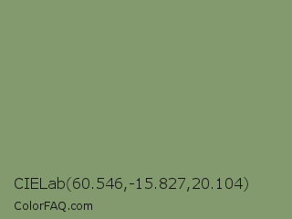 CIELab 60.546,-15.827,20.104 Color is a normal green color and the nearest color is Battleship Gray #828f72. Hex code #83996e and RGB value is rgb(131,153,110). In RGB color space, this color is composed of 51% red, 60% green, 43% blue, In CMYK color space, this color is composed of 14% cyan, 0% magenta, 28% yellow , 40% black , In HSL color space, this color has a hue angle of 91° , 17% saturation and 52% lightness.