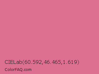 CIELab 60.592,46.465,1.619 Color is a light rose color and the nearest color is Pale Red Violet #db7093. Hex code #dd6f91 and RGB value is rgb(221,111,145). In RGB color space, this color is composed of 87% red, 44% green, 57% blue, In CMYK color space, this color is composed of 0% cyan, 50% magenta, 34% yellow , 13% black , In HSL color space, this color has a hue angle of 341° , 62% saturation and 65% lightness.