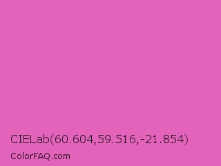 CIELab 60.604,59.516,-21.854 Color is a light magenta color and the nearest color is Sky Magenta #cf71af. Hex code #e363ba and RGB value is rgb(227,99,186). In RGB color space, this color is composed of 89% red, 39% green, 73% blue, In CMYK color space, this color is composed of 0% cyan, 56% magenta, 18% yellow , 11% black , In HSL color space, this color has a hue angle of 319° , 70% saturation and 64% lightness.
