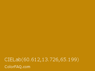 CIELab 60.612,13.726,65.199 Color is a normal orange color and the nearest color is Pirate Gold #ba7f03. Hex code #c28705 and RGB value is rgb(194,135,5). In RGB color space, this color is composed of 76% red, 53% green, 2% blue, In CMYK color space, this color is composed of 0% cyan, 30% magenta, 97% yellow , 24% black , In HSL color space, this color has a hue angle of 41° , 95% saturation and 39% lightness.