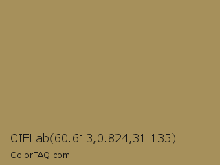 CIELab 60.613,0.824,31.135 Color is a normal orange color and the nearest color is Barley Corn #a68b5b. Hex code #a6905b and RGB value is rgb(166,144,91). In RGB color space, this color is composed of 65% red, 56% green, 36% blue, In CMYK color space, this color is composed of 0% cyan, 13% magenta, 45% yellow , 35% black , In HSL color space, this color has a hue angle of 42° , 30% saturation and 50% lightness.