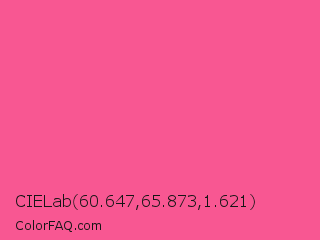 CIELab 60.647,65.873,1.621 Color is a light rose color and the nearest color is Violet Red #f75394. Hex code #f85792 and RGB value is rgb(248,87,146). In RGB color space, this color is composed of 97% red, 34% green, 57% blue, In CMYK color space, this color is composed of 0% cyan, 65% magenta, 41% yellow , 3% black , In HSL color space, this color has a hue angle of 338° , 92% saturation and 66% lightness.