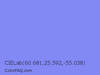 CIELab 60.681,25.592,-55.038 Color is a light blue color and the nearest color is Portage #8b9fee. Hex code #8288f4 and RGB value is rgb(130,136,244). In RGB color space, this color is composed of 51% red, 53% green, 96% blue, In CMYK color space, this color is composed of 47% cyan, 44% magenta, 0% yellow , 4% black , In HSL color space, this color has a hue angle of 237° , 84% saturation and 73% lightness.
