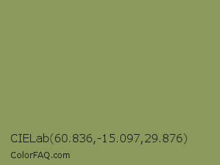 CIELab 60.836,-15.097,29.876 Color is a normal lime color and the nearest color is Moss Green #8a9a5b. Hex code #8b995d and RGB value is rgb(139,153,93). In RGB color space, this color is composed of 55% red, 60% green, 36% blue, In CMYK color space, this color is composed of 9% cyan, 0% magenta, 39% yellow , 40% black , In HSL color space, this color has a hue angle of 74° , 24% saturation and 48% lightness.