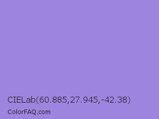 CIELab 60.885,27.945,-42.38 Color is a light indigo color and the nearest color is Lilac Bush #9874d3. Hex code #9c85de and RGB value is rgb(156,133,222). In RGB color space, this color is composed of 61% red, 52% green, 87% blue, In CMYK color space, this color is composed of 30% cyan, 40% magenta, 0% yellow , 13% black , In HSL color space, this color has a hue angle of 256° , 57% saturation and 70% lightness.