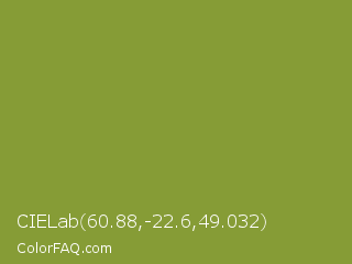 CIELab 60.88,-22.6,49.032 Color is a normal lime color and the nearest color is Sushi #87ab39. Hex code #869c36 and RGB value is rgb(134,156,54). In RGB color space, this color is composed of 53% red, 61% green, 21% blue, In CMYK color space, this color is composed of 14% cyan, 0% magenta, 65% yellow , 39% black , In HSL color space, this color has a hue angle of 73° , 49% saturation and 41% lightness.