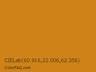 CIELab 60.916,22.006,62.356 Color is a normal orange color and the nearest color is Meteor #d07d12. Hex code #ce8218 and RGB value is rgb(206,130,24). In RGB color space, this color is composed of 81% red, 51% green, 9% blue, In CMYK color space, this color is composed of 0% cyan, 37% magenta, 88% yellow , 19% black , In HSL color space, this color has a hue angle of 35° , 79% saturation and 45% lightness.