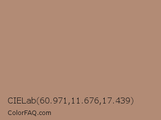 CIELab 60.971,11.676,17.439 Color is a normal orange color and the nearest color is Light Taupe #b38b6d. Hex code #b28b75 and RGB value is rgb(178,139,117). In RGB color space, this color is composed of 70% red, 55% green, 46% blue, In CMYK color space, this color is composed of 0% cyan, 22% magenta, 34% yellow , 30% black , In HSL color space, this color has a hue angle of 22° , 28% saturation and 58% lightness.
