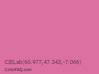 CIELab 60.977,47.343,-7.066 Color is a light rose color and the nearest color is Thulian Pink #de6fa1. Hex code #db70a1 and RGB value is rgb(219,112,161). In RGB color space, this color is composed of 86% red, 44% green, 63% blue, In CMYK color space, this color is composed of 0% cyan, 49% magenta, 26% yellow , 14% black , In HSL color space, this color has a hue angle of 333° , 60% saturation and 65% lightness.