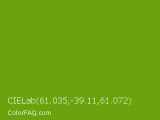 CIELab 61.035,-39.11,61.072 Color is a normal green color and the nearest color is Christi #67a712. Hex code #6aa30d and RGB value is rgb(106,163,13). In RGB color space, this color is composed of 42% red, 64% green, 5% blue, In CMYK color space, this color is composed of 35% cyan, 0% magenta, 92% yellow , 36% black , In HSL color space, this color has a hue angle of 83° , 85% saturation and 35% lightness.
