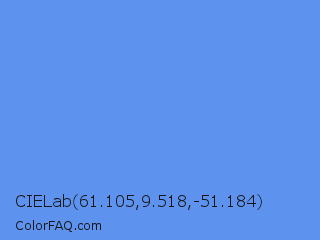 CIELab 61.105,9.518,-51.184 Color is a light blue color and the nearest color is Cornflower Blue #6495ed. Hex code #5d93ee and RGB value is rgb(93,147,238). In RGB color space, this color is composed of 36% red, 58% green, 93% blue, In CMYK color space, this color is composed of 61% cyan, 38% magenta, 0% yellow , 7% black , In HSL color space, this color has a hue angle of 218° , 81% saturation and 65% lightness.