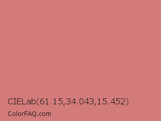 CIELab 61.15,34.043,15.452 Color is a light red color and the nearest color is New York Pink #d7837f. Hex code #d37b7a and RGB value is rgb(211,123,122). In RGB color space, this color is composed of 83% red, 48% green, 48% blue, In CMYK color space, this color is composed of 0% cyan, 42% magenta, 42% yellow , 17% black , In HSL color space, this color has a hue angle of 1° , 50% saturation and 65% lightness.
