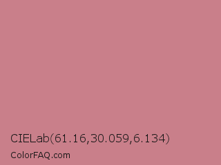 CIELab 61.16,30.059,6.134 Color is a light red color and the nearest color is Old Rose #c08081. Hex code #c97f8a and RGB value is rgb(201,127,138). In RGB color space, this color is composed of 79% red, 50% green, 54% blue, In CMYK color space, this color is composed of 0% cyan, 37% magenta, 31% yellow , 21% black , In HSL color space, this color has a hue angle of 351° , 41% saturation and 64% lightness.