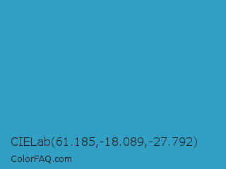 CIELab 61.185,-18.089,-27.792 Color is a normal blue color and the nearest color is Pelorous #3eabbf. Hex code #329fc4 and RGB value is rgb(50,159,196). In RGB color space, this color is composed of 20% red, 62% green, 77% blue, In CMYK color space, this color is composed of 74% cyan, 19% magenta, 0% yellow , 23% black , In HSL color space, this color has a hue angle of 195° , 59% saturation and 48% lightness.