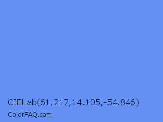 CIELab 61.217,14.105,-54.846 Color is a light blue color and the nearest color is Cornflower Blue #6495ed. Hex code #6391f5 and RGB value is rgb(99,145,245). In RGB color space, this color is composed of 39% red, 57% green, 96% blue, In CMYK color space, this color is composed of 60% cyan, 41% magenta, 0% yellow , 4% black , In HSL color space, this color has a hue angle of 221° , 88% saturation and 67% lightness.