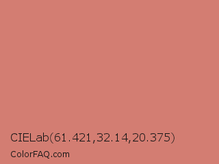 CIELab 61.421,32.14,20.375 Color is a light red color and the nearest color is New York Pink #d7837f. Hex code #d37d72 and RGB value is rgb(211,125,114). In RGB color space, this color is composed of 83% red, 49% green, 45% blue, In CMYK color space, this color is composed of 0% cyan, 41% magenta, 46% yellow , 17% black , In HSL color space, this color has a hue angle of 7° , 52% saturation and 64% lightness.