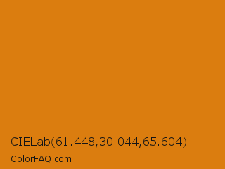 CIELab 61.448,30.044,65.604 Color is a normal orange color and the nearest color is Meteor #d07d12. Hex code #db7d0f and RGB value is rgb(219,125,15). In RGB color space, this color is composed of 86% red, 49% green, 6% blue, In CMYK color space, this color is composed of 0% cyan, 43% magenta, 93% yellow , 14% black , In HSL color space, this color has a hue angle of 32° , 87% saturation and 46% lightness.