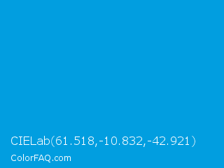 CIELab 61.518,-10.832,-42.921 Color is a normal blue color and the nearest color is Cerulean #02a4d3. Hex code #019ee0 and RGB value is rgb(1,158,224). In RGB color space, this color is composed of 0% red, 62% green, 88% blue, In CMYK color space, this color is composed of 100% cyan, 29% magenta, 0% yellow , 12% black , In HSL color space, this color has a hue angle of 198° , 99% saturation and 44% lightness.
