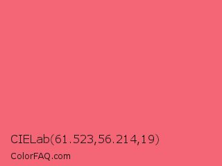 CIELab 61.523,56.214,19 Color is a light red color and the nearest color is Begonia #fa6e79. Hex code #f46576 and RGB value is rgb(244,101,118). In RGB color space, this color is composed of 96% red, 40% green, 46% blue, In CMYK color space, this color is composed of 0% cyan, 59% magenta, 52% yellow , 4% black , In HSL color space, this color has a hue angle of 353° , 87% saturation and 68% lightness.