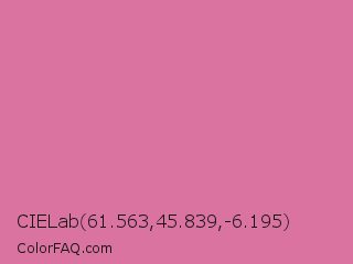 CIELab 61.563,45.839,-6.195 Color is a light rose color and the nearest color is Thulian Pink #de6fa1. Hex code #db73a1 and RGB value is rgb(219,115,161). In RGB color space, this color is composed of 86% red, 45% green, 63% blue, In CMYK color space, this color is composed of 0% cyan, 47% magenta, 26% yellow , 14% black , In HSL color space, this color has a hue angle of 333° , 59% saturation and 65% lightness.