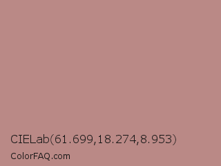 CIELab 61.699,18.274,8.953 Color is a light red color and the nearest color is Brandy Rose #bb8983. Hex code #ba8986 and RGB value is rgb(186,137,134). In RGB color space, this color is composed of 73% red, 54% green, 53% blue, In CMYK color space, this color is composed of 0% cyan, 26% magenta, 28% yellow , 27% black , In HSL color space, this color has a hue angle of 3° , 27% saturation and 63% lightness.